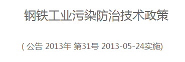 鋼鐵工業(yè)污染防治技術政策( 公告 2013年 第31號 2013-05-24實施) 一、總則 (一)為貫徹《中華人民共和國環(huán)境保護法》等法律法規(guī),防治環(huán)境污染,保障生態(tài)安全和人體健康,促進鋼鐵工業(yè)結構優(yōu)化升級,推進行業(yè)可持續(xù)發(fā)展,制定本技術政策。 (二)本技術政策為指導性文件,供各有關單位在環(huán)境保護...