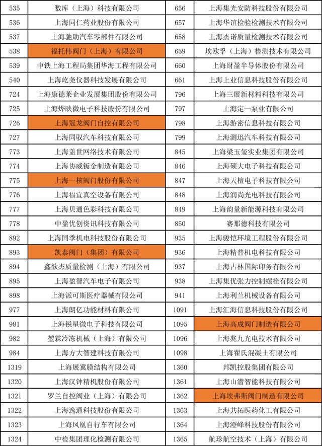 5月19日,上海市經濟和信息化委員會公示了《2021年度上海市“專精特新”企業(yè)名單》,福托偉閥門(上海)有限公司、上海冠龍閥門自控有限公司、上海一核閥門股份有限公司、凱泰閥門(集團)有限公司、上海高成閥門制造有限公司、上海埃弗斯閥門制造有限公司6家企業(yè)成功入選。 根據工信部的...