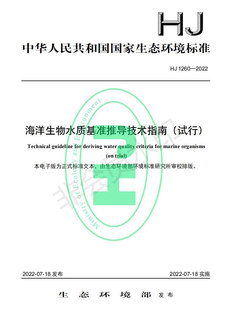 近日,生態(tài)環(huán)境部發(fā)布了《海洋生物水質基準推導技術指南(試行)》。本標準規(guī)定了海洋生物水質基準推導的一般性程序、方法與技術要求。本標準的附錄 A~附錄 E 為資料性附錄。本標準為首次發(fā)布。 詳情如下: 原標題:關于發(fā)布國家生態(tài)環(huán)境標準《海洋生物水質基準推導技術指南(試行)》的公告搜索復制 相關資料下載...
