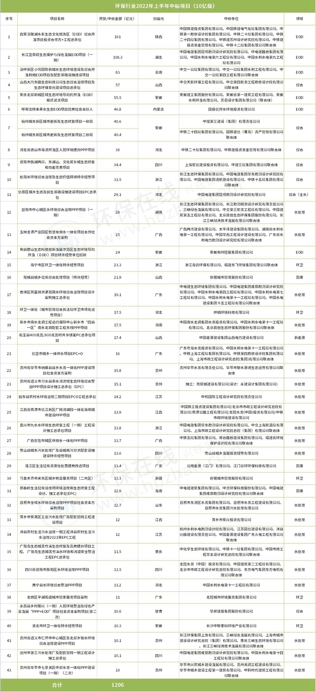 2022年行程過半,上半年的龍爭虎斗也有了半程賽結(jié)果。環(huán)保在線特盤點了上半年10億級環(huán)保項目,粗略統(tǒng)計約有43個,總投資超過1200億。 如下圖:(僅供參考,如有錯漏歡迎留言抓蟲) 沒有懸念,金額TOP榜前3全是EOD項目,前5也有4個被EOD項目霸占了——西安渼陂湖水系生態(tài)...