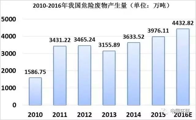 2016年,危廢真正實現集中處置的比例估計不到35%;2017年,危廢產生量預計超過6000萬噸,危廢處理市場挑戰(zhàn)和機遇并存。