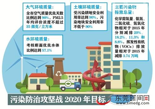 《行動計(jì)劃》為打好污染防治攻堅(jiān)戰(zhàn)指明了方向,提出在水環(huán)境、大氣環(huán)境、土壤環(huán)境、城市固體廢物處置、主要污染物排放等五方面的改善計(jì)劃。到2020年,完成省下達(dá)的總量減排任務(wù),主要污染物排放總量大幅減少,生態(tài)環(huán)境質(zhì)量出現(xiàn)拐點(diǎn)并持續(xù)改善,實(shí)現(xiàn)環(huán)境質(zhì)量狀況、綠色發(fā)展水平、環(huán)境治理能力有力提升,為2022年環(huán)境質(zhì)量實(shí)現(xiàn)根本性改善、2035年基本實(shí)現(xiàn)社會主義現(xiàn)代化,建成美麗東莞奠定堅(jiān)實(shí)基礎(chǔ)。