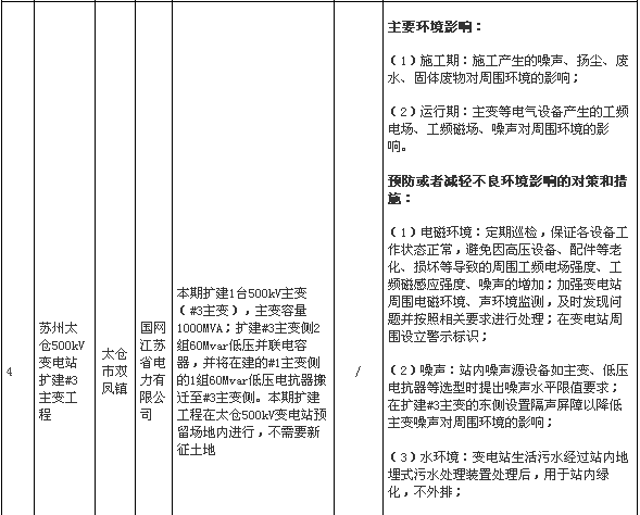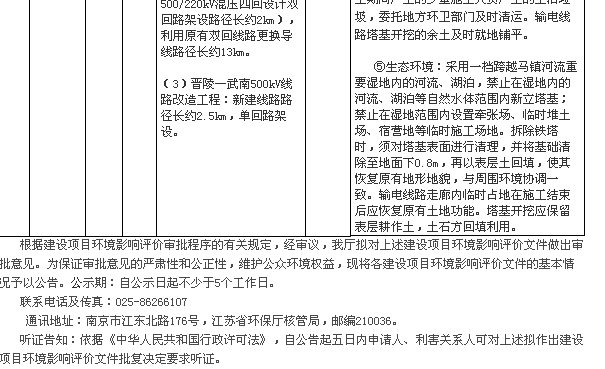 近日,江蘇省環(huán)境廳發(fā)布了擬對(duì)輸變電項(xiàng)目環(huán)評(píng)文件作出審批意見的公告,對(duì)項(xiàng)目影響環(huán)境的影響和對(duì)策提出了相應(yīng)要求,詳情如下: