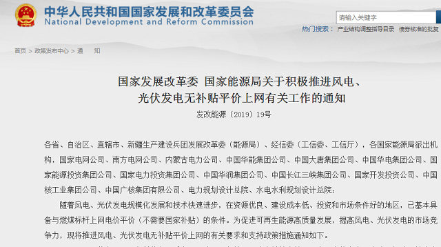請各有關(guān)單位按照上述要求,積極推進(jìn)風(fēng)電、光伏發(fā)電平價上網(wǎng)項目和低價上網(wǎng)項目建設(shè),各省(自治區(qū)、直轄市)能源主管部門應(yīng)將有關(guān)項目信息報送國家能源局。國家發(fā)展改革委、國家能源局將及時公布平價上網(wǎng)項目和低價上網(wǎng)項目名單,協(xié)調(diào)和督促有關(guān)方面做好相關(guān)支持政策的落實工作。
