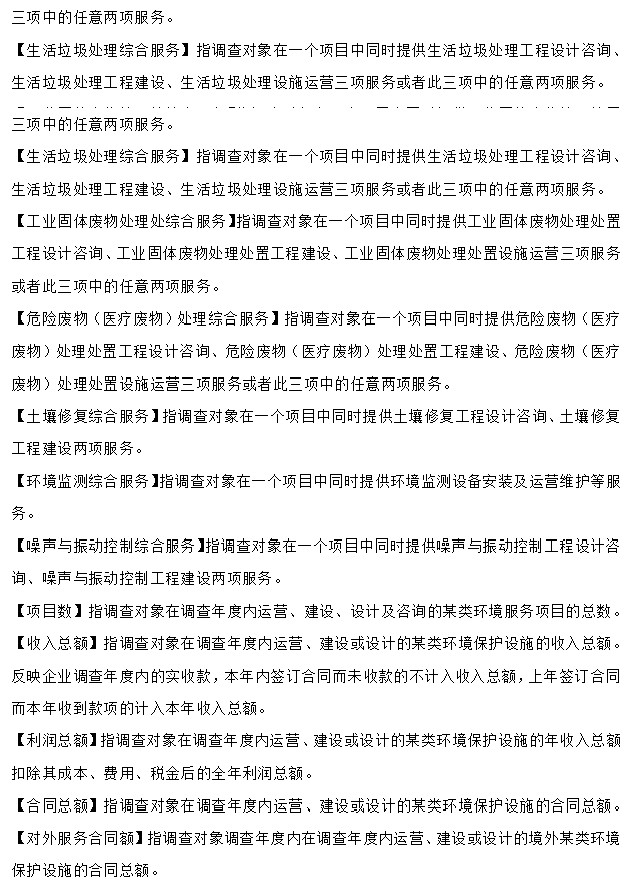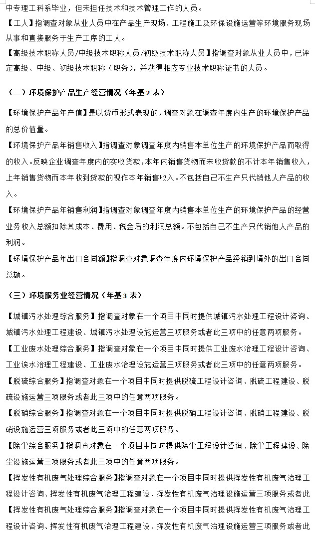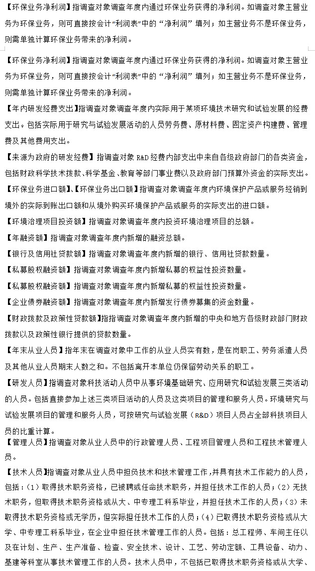 調(diào)查內(nèi)容包括企業(yè)的基本情況、環(huán)境保護產(chǎn)品生產(chǎn)經(jīng)營情況、環(huán)境服務業(yè)經(jīng)營情況等。