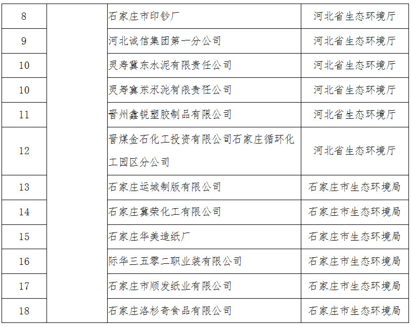 近日,河北省環(huán)境廳發(fā)布了關(guān)于公布河北省2019年度開展強制性清潔生產(chǎn)審核企業(yè)名單的通知,全文如下: