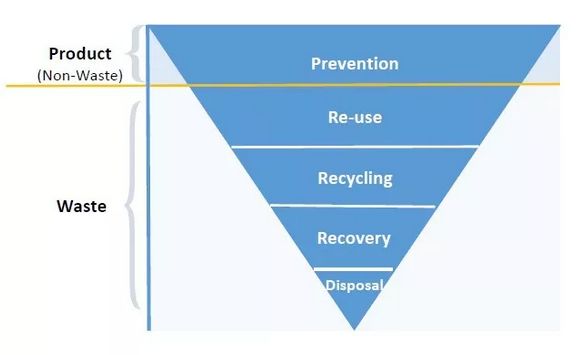 在固廢處理領(lǐng)域,最重要的法規(guī)是1975年頒布的廢棄物框架指令,該指令頒布以來,經(jīng)歷了1991年、2006年、2008年共3次修訂,明確了關(guān)于廢棄物處理的各種概念、定義,是歐盟在固廢處理領(lǐng)域最重要的法律之一。該指令提出了固廢處理金字塔(European Waste Hierarchy)的概念。固廢處理金字塔是歐盟提出的應(yīng)對(duì)廢棄物問題的處理原則,規(guī)定了各種方法的優(yōu)先級(jí),體現(xiàn)了歐盟對(duì)于固廢處理的先進(jìn)理念,歐盟各國也基本是在遵循此原則開展廢棄物處理工作。具體如下圖所示: