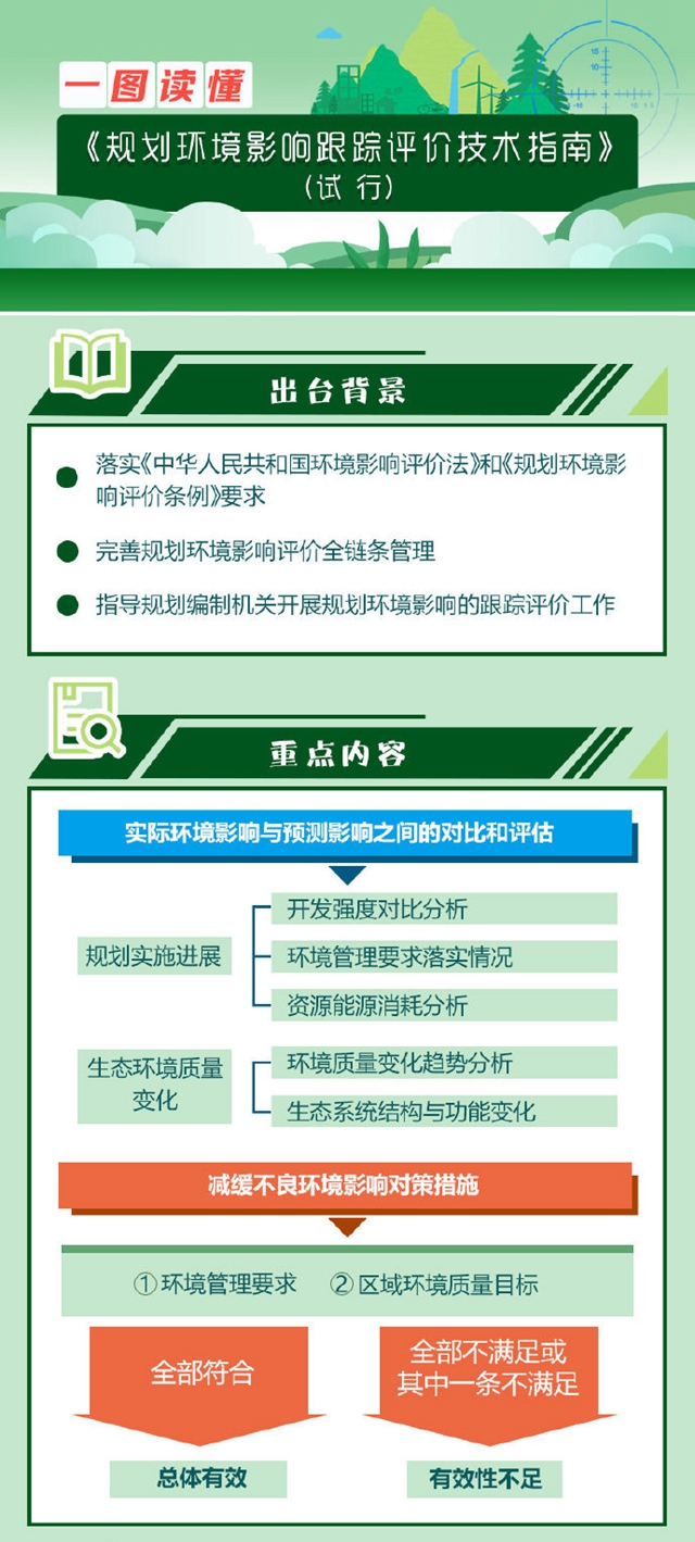 近日,生態(tài)環(huán)境部印發(fā)了《規(guī)劃環(huán)境影響跟蹤評價技術(shù)指南》(試行),這是落實《環(huán)境影響評價法》《規(guī)劃環(huán)境影響評價條例》要求,主動強化指導(dǎo)和服務(wù),完善規(guī)劃環(huán)境影響評價全鏈條管理的重要舉措。