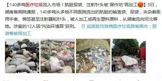 布滿血液、病原體、分泌物的醫(yī)療廢物,在不規(guī)范的黑色產(chǎn)業(yè)鏈里,重新加工,重新流入市場,轉(zhuǎn)變成我們手中買菜的袋子,甚至孩子們手中的玩具.......