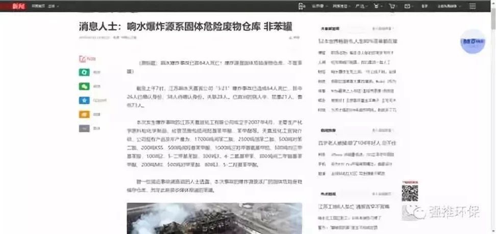 近日,針對響水爆炸事故,有文章指出,“據(jù)一位接近事故調(diào)查組的人士透露,本次事故的爆炸源是該廠的固體危險(xiǎn)廢物儲存?zhèn)}庫,而非此前很多媒體報(bào)道的苯罐。”目前這一報(bào)道,已被多家主流媒體轉(zhuǎn)載。
