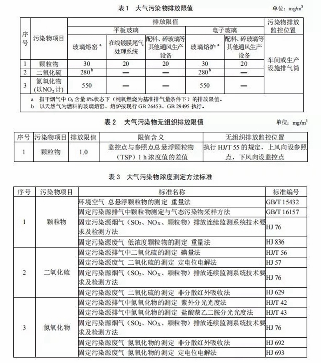 標準規(guī)定了平板玻璃、電子玻璃制造企業(yè)或生產(chǎn)設施的大氣污染物中顆粒物、二氧化硫、氮氧化物的排放限值、監(jiān)測和監(jiān)控要求,以及標準實施與監(jiān)督等相關規(guī)定。