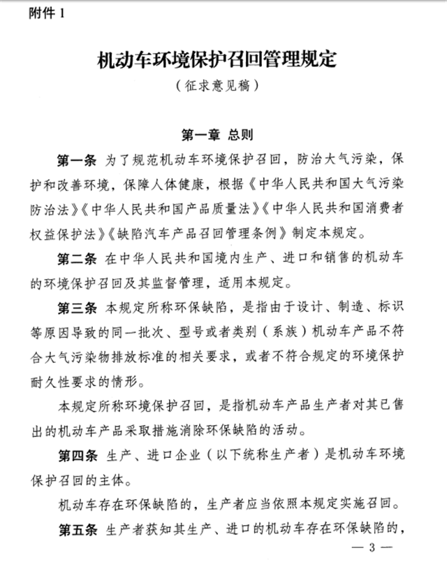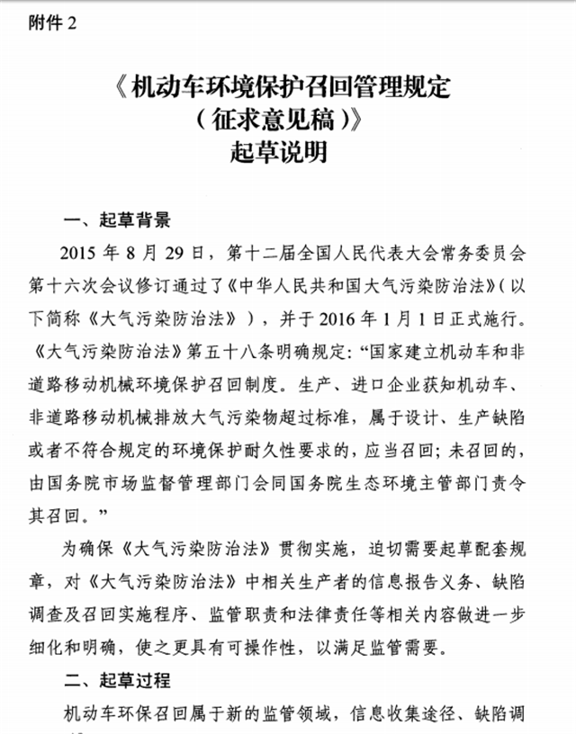 2、《機動車環(huán)境保護召回管理規(guī)定(征求意見稿)》起草說明
