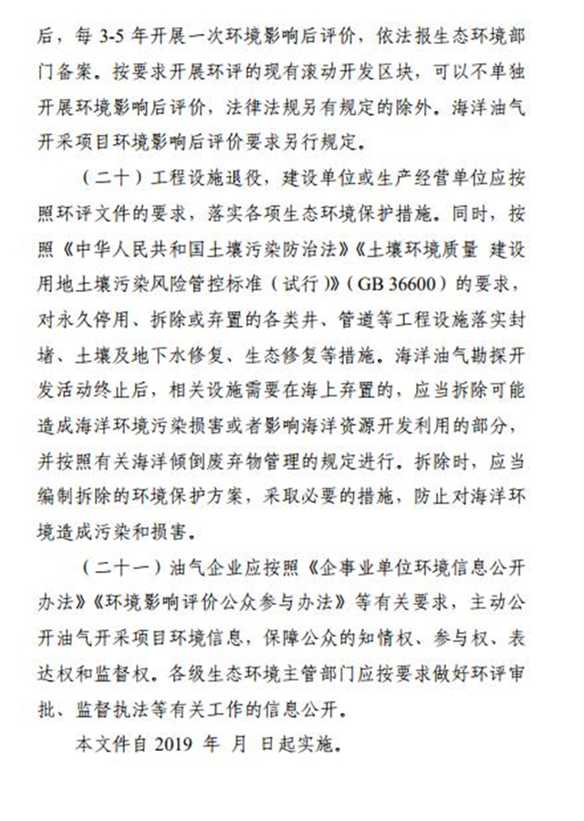 原標題:《關(guān)于進一步加強石油天然氣行業(yè)環(huán)境影響評價管理的通知(征求意見稿)》征求意見