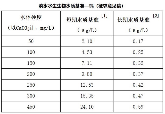 2.淡水水生生物水質基準—鎘(征求意見稿)