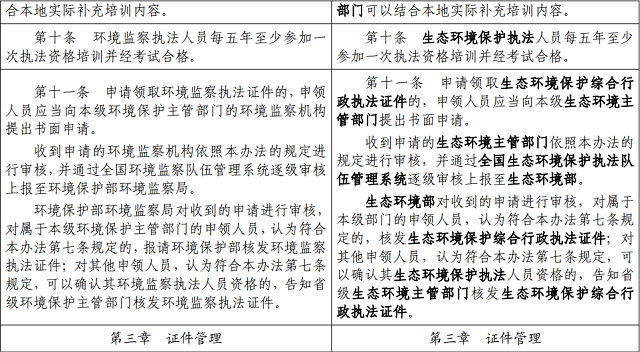 第十條 生態(tài)環(huán)境保護(hù)執(zhí)法人員每五年至少參加一次執(zhí)法資格培訓(xùn)并經(jīng)考試合格。