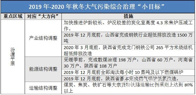汾渭平原——①加快焦化行業(yè)結構升級,淘汰老舊焦爐②加大散煤整治,2019采暖季前完成198萬戶③推進煤炭和焦炭運輸“公轉鐵”