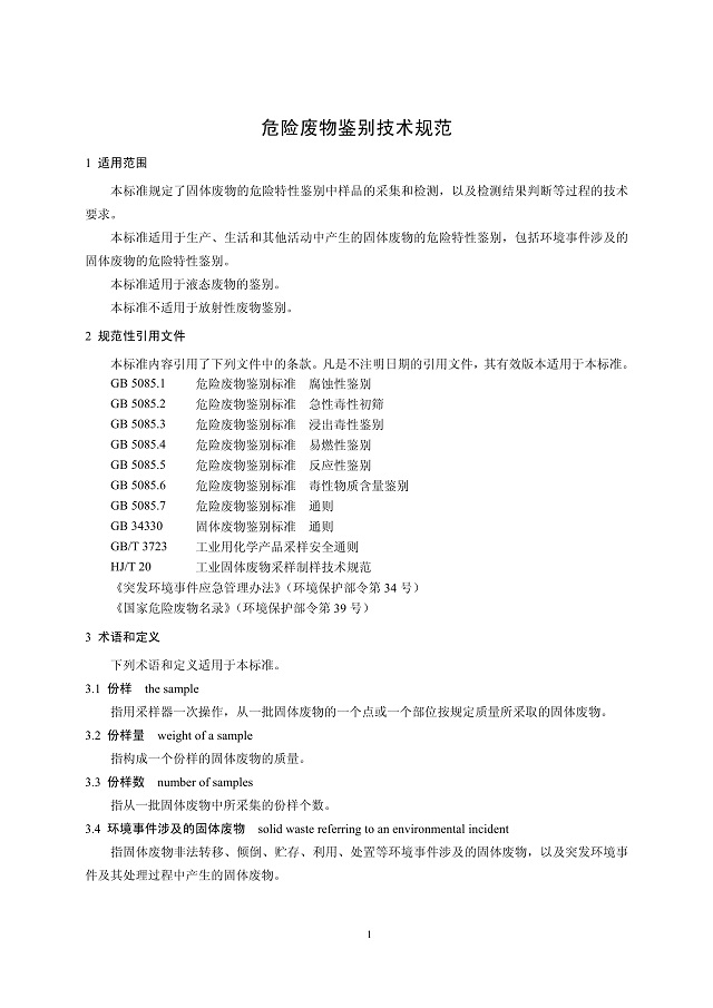 《危險(xiǎn)廢物鑒別技術(shù)規(guī)范》(HJ 298-2019)