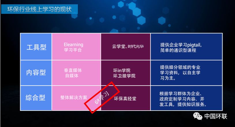 當(dāng)前環(huán)保行業(yè)人才缺口達(dá)300萬,且存在現(xiàn)有人員崗位技能合格率低以及企業(yè)和個(gè)人自我賦能乏力的問題。大型企業(yè)在提升工作人員技能方面,一般采取企業(yè)內(nèi)訓(xùn)、購買培訓(xùn)服務(wù)及外出參加培訓(xùn)的方式,但95%的中小微企業(yè)由于資金、管理機(jī)制等方面的不足,面臨員工培訓(xùn)機(jī)制不完善的困境。對(duì)此,阮洪銀提出了6o學(xué)習(xí)的模式:即將終身學(xué)習(xí)、系統(tǒng)化學(xué)習(xí)、組織化學(xué)習(xí),學(xué)習(xí)與愛好多重,學(xué)習(xí)與生活多重,多對(duì)多,老師與學(xué)生角色多重,學(xué)習(xí)與營銷多重等六維度相結(jié)合,重新定義“知識(shí)”含義與獲取路徑,重新定義企業(yè)商業(yè)信息宣發(fā)路徑。