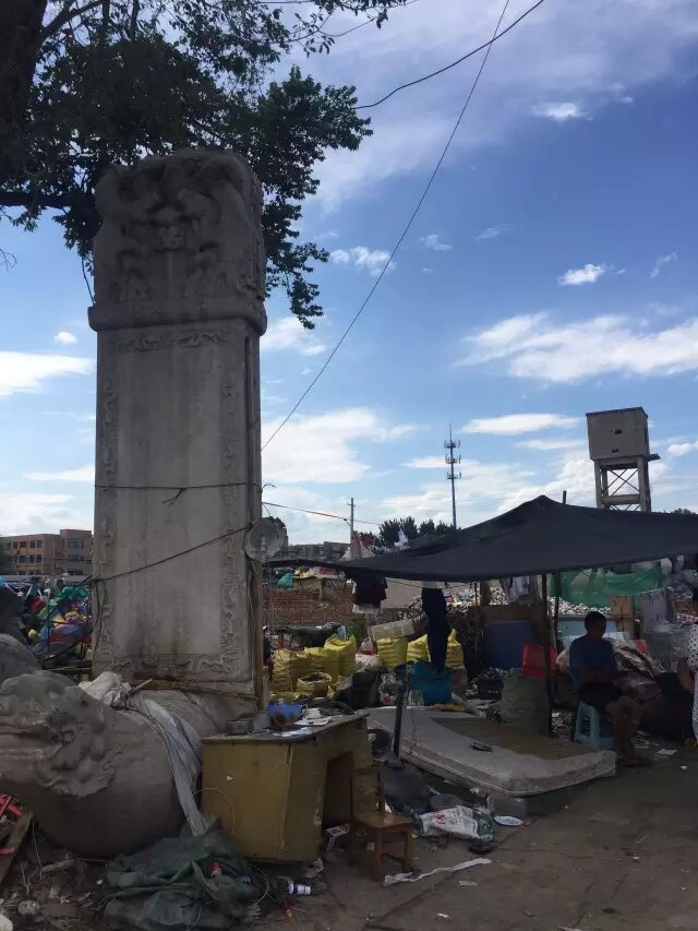7. 廢品回收站什么寶貝都有。在京北以回收站內(nèi),甚至存有一康熙十四年(1676)立螭首龜趺碑,碑文內(nèi)容涉及清初高級武將圖海家事以及清史重要事件。這塊康熙諭祭墓碑旁邊是一個(gè)回收玻璃的攤位。