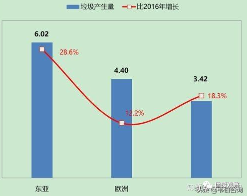 根據(jù)2018年12月世界銀行發(fā)布的調(diào)查報告,2016年全球城市生活垃圾產(chǎn)生量為20.1億噸。東亞太平洋地區(qū)是目前產(chǎn)生垃圾最多的區(qū)域,占世界垃圾總量的23%。盡管高收入國家僅占全球人口的16%,但產(chǎn)生的垃圾量卻超過世界垃圾總量的三分之一。