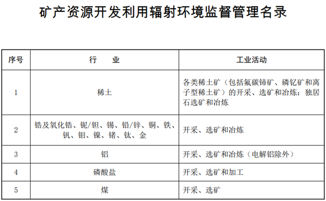 相關資料下載:《關于印發(fā)〈礦產資源開發(fā)利用輻射環(huán)境監(jiān)督管理名錄〉的通知(征求意見稿)》編制說明