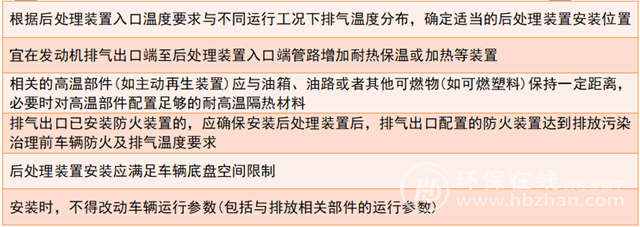 在安裝后處理裝置時,《技術(shù)指南》也提出了具體的要求,詳情如下: