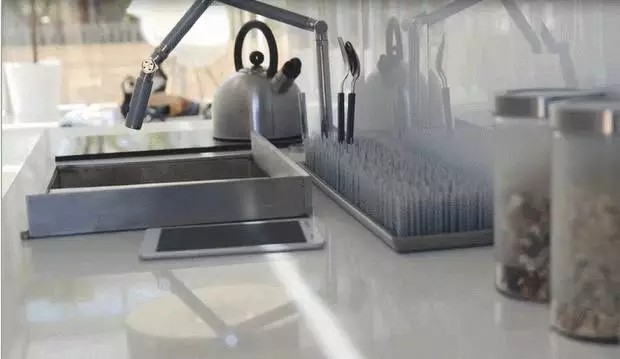 鳥巢溫控器可以讓內(nèi)部始終保持著適合人體舒適的溫度,Amazon Echo則是實(shí)現(xiàn)智能家居用聲音控制家居用品的智能音箱,能實(shí)現(xiàn)房子的語音控制和智能化,SageGlass制造的特殊玻璃能能根據(jù)室外陽光強(qiáng)度來遮陰,這樣就不需要百葉窗了,KASITA還配備了PHILIPS色調(diào)燈光,可以通過app控制色溫,讓房間光線配合人的需要。