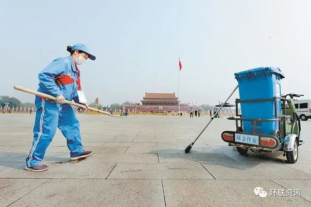 “您已進(jìn)入廣場(chǎng)地區(qū),請(qǐng)將手里的垃圾按分類要求投入相應(yīng)垃圾箱,共同愛護(hù)廣場(chǎng)環(huán)境。”今天一早,走進(jìn)天安門廣場(chǎng)的游客都會(huì)聽到這樣一段提示語(yǔ),提醒大家注意垃圾分類。幾臺(tái)電動(dòng)保潔清運(yùn)車在廣場(chǎng)上有序穿梭,車后掛著藍(lán)色或銀色的分類垃圾桶。