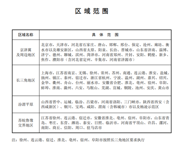 區(qū)域范圍如下表: