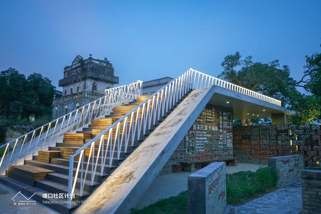 近年來(lái),江門市住房和城鄉(xiāng)建設(shè)局按照省部設(shè)計(jì)下鄉(xiāng)工作要求,通過(guò)示范引領(lǐng)、設(shè)計(jì)先行,積極引導(dǎo)和支持開平市塘口鎮(zhèn)打造設(shè)計(jì)下鄉(xiāng)和美麗鄉(xiāng)村共同締造連片示范。作為省級(jí)設(shè)計(jì)下鄉(xiāng)試點(diǎn)鎮(zhèn)的開平市塘口鎮(zhèn),緊緊圍繞鄉(xiāng)村振興、設(shè)計(jì)先行的理念,以資源為導(dǎo)向?qū)⑹痉镀鳛橐?guī)劃建設(shè)重點(diǎn),以打造一條美麗鄉(xiāng)村精品線路為目標(biāo),重點(diǎn)開展3A級(jí)旅游公廁、文創(chuàng)樓等精品項(xiàng)目設(shè)計(jì)與建設(shè)。榮獲2020年世界景觀建筑獎(jiǎng)(WLA)的塘口祖宅旅游廁所就是其中精品項(xiàng)目 。該建筑巧妙地將舊公廁清拆的舊材料進(jìn)行重新利用,保留了鄉(xiāng)村歷史記憶。同時(shí),將衛(wèi)生間部分功能區(qū)藏在一個(gè)供村民日常休閑娛樂(lè)、舉辦活動(dòng)的大臺(tái)階之下,解決了公共廁所便利性與隱蔽性的矛盾關(guān)系。