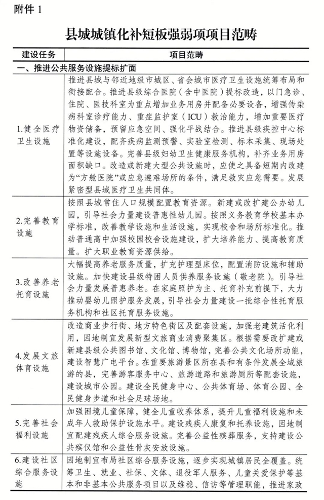 附件:1.縣城城鎮(zhèn)化補短板強弱項項目范疇