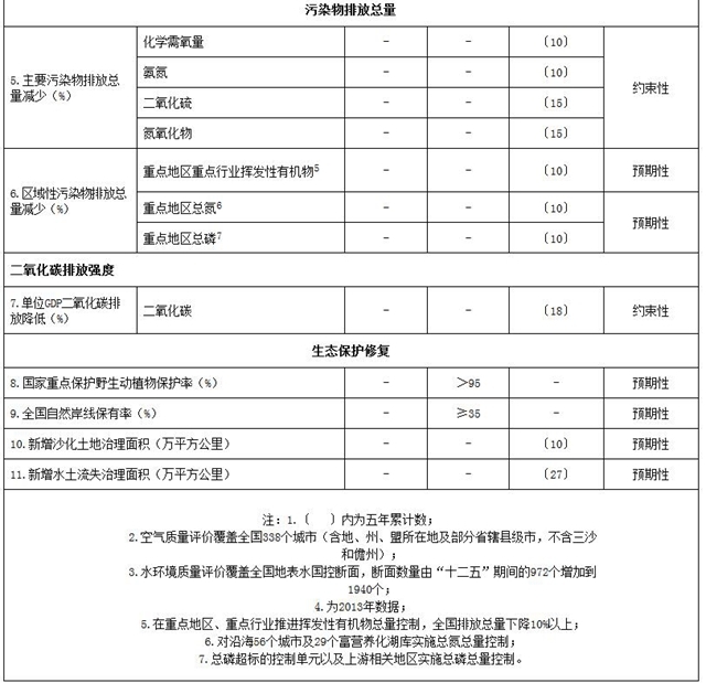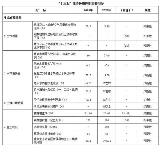 附件:“十三五”生態(tài)環(huán)境保護(hù)主要指標(biāo)
