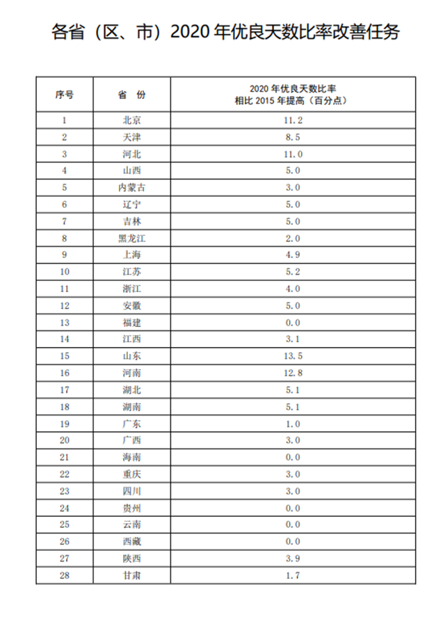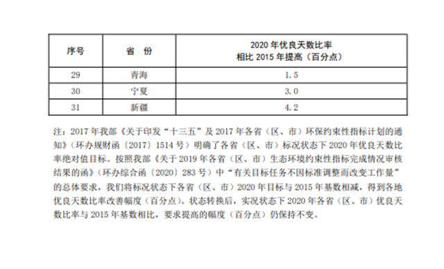 3.各省(區(qū)、市)2020年優(yōu)良天數(shù)比率改善任務