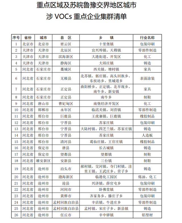 4.重點區(qū)域及蘇皖魯豫交界地區(qū)城市涉VOCs重點企業(yè)集群清單