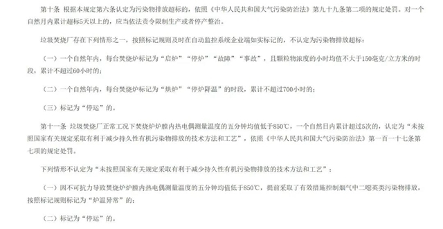 圖為《生活垃圾焚燒發(fā)電廠自動監(jiān)測數(shù)據(jù)應(yīng)用管理規(guī)定》第十條、第十一條規(guī)定
