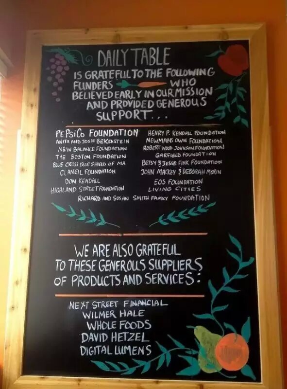 去年,他在大波士頓地區(qū)的Dorchester創(chuàng)建了第一家Daily Table,專門為低收入者提供健康、營養(yǎng)、低價的食品。這些食品來源主要是廠商生產過量沒有售出以及臨近保質期或最佳食用日期的食品。它們多由生產商、供貨商、分銷商、食物救濟組織捐贈,也有一部分通過購買獲得,在Daily Table的售價通常僅為其他超市的1/3。