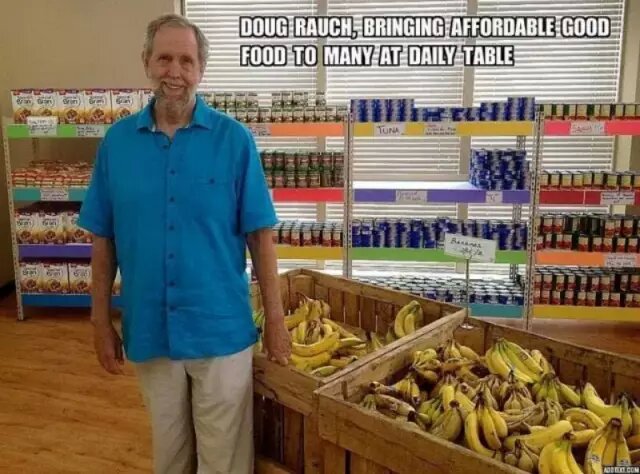 是的,Doug Rauch,他在做。他曾是美國連鎖超市Trader Joe’s的創(chuàng)始人,并且在那里工作了31年,可稱作零售業(yè)的老司機。據了解,Rauch是在2010-2012年參加哈佛大學高級領導者聯盟學習時產生了創(chuàng)建Daily Table的想法。他最初的想法是解決窮人吃不飽(不夠卡路里)的問題。但經過研究發(fā)現,美國有幾百個與Food Bank類似的大大小小公益組織,都旨在提供熱量,而不是營養(yǎng)。所以他開始將注意力轉移到如何讓低收入者吃得健康上。根據設計的商業(yè)模式,Daily Table將能自給自足持續(xù)運轉下去,而不需要依靠外界的資金捐贈。