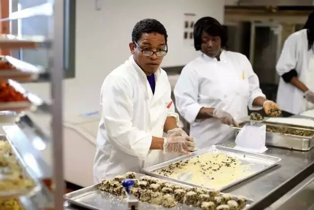 店里首席廚師也來頭不小,Ismail Samad先生曾供職于包括米其林在內的多家餐廳。現在他的任務可不只是將食物做好吃那么簡單,挑戰(zhàn)多著呢。試想2000磅胡蘿卜擺在你面前,需要采用有創(chuàng)造性的方法烹飪并要易于保存,然后賣給經濟收入較低的居民,這是什么感覺?而他每天都要帶領團隊面臨這種挑戰(zhàn)。同時,這些成品必須經過膳食指南的嚴格檢驗以保證健康營養(yǎng)。此外,重要的話說三遍,便宜。每份主菜售價在1.79-4.99美元之間,配菜為50美分-1美元,湯為1.99-3.99美元。