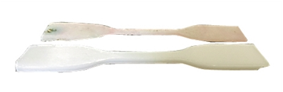 在海水里浸泡3個(gè)月的海水可降解塑料樣品(上)和良好保存的樣品(下)對比