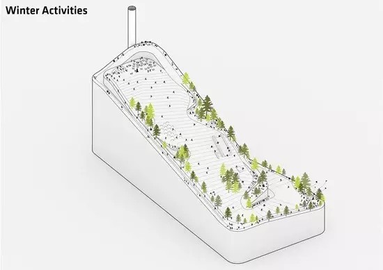 前文我們提到了建成后的ARC工廠將和周?chē)用竦纳畹溔谌氲揭黄?,所以除了先進(jìn)的工藝之外,工廠在建筑設(shè)計(jì)的時(shí)候,在其頂部還設(shè)計(jì)了一條人造滑雪道,在冬天的時(shí)候可以開(kāi)放給公眾進(jìn)行滑雪運(yùn)動(dòng),真正做到垃圾焚燒廠和居民的和諧共處。