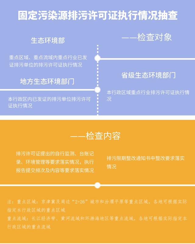 其中建設項目環(huán)評文件及批復要求落實情況抽查和固定污染源排污許可證執(zhí)行情況抽查都提到了,納入“雙隨機、一公開”日常執(zhí)法監(jiān)管。