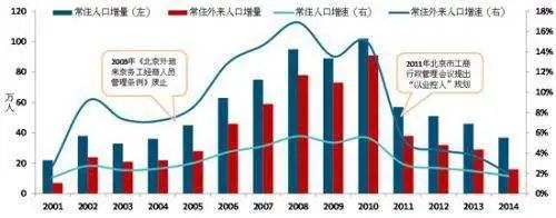 從2010年開始,為應對外來人口過快增長,北京出臺一系列人口調(diào)控組合拳,從此之后,北京外來人口增速一直呈現(xiàn)下降態(tài)勢。后來,隨著北京城市規(guī)劃中對勞動密集型產(chǎn)業(yè)的壓縮和外遷,廢品回收產(chǎn)業(yè)被列入被禁止建設的行業(yè),北京市再生資源回收遇到了前所未有的寒冬,北京五環(huán)到六環(huán)之間的廢品分類和交易市場在數(shù)月期間消失。
