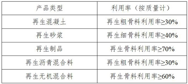 (四)企業(yè)生產(chǎn)資源化利用產(chǎn)品,其建筑垃圾再生材料的利用率應符合表2的規(guī)定。