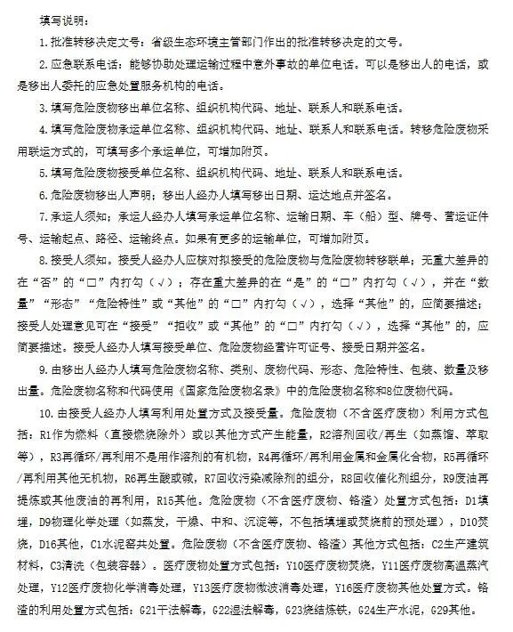 (三)根據(jù)危險廢物管理計劃運行危險廢物轉(zhuǎn)移聯(lián)單,在危險廢物轉(zhuǎn)移聯(lián)單中如實填寫移出人、承運人、接受人信息以及擬轉(zhuǎn)移危險廢物的種類、重量(數(shù)量)、危險特性等危險廢物信息和環(huán)境應(yīng)急措施;