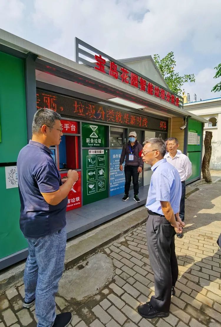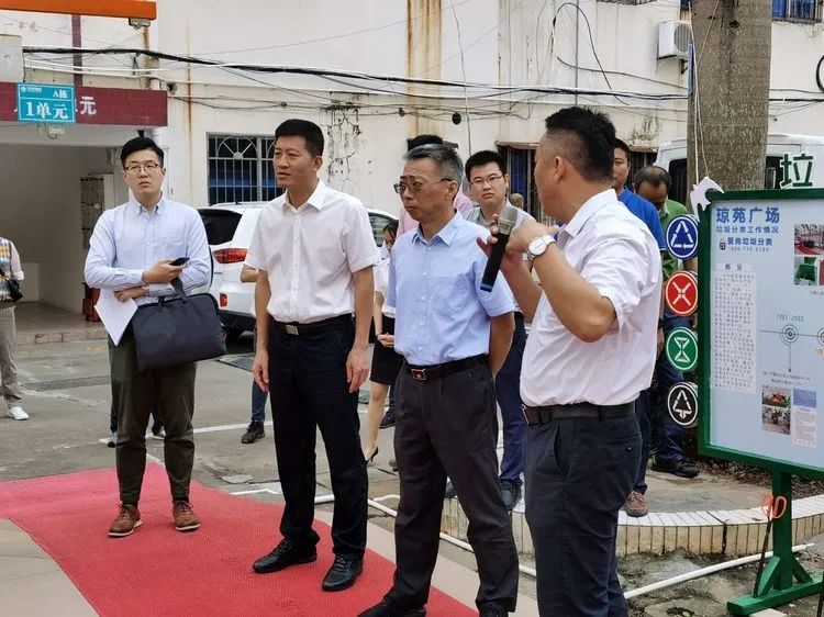 張小宏司長現(xiàn)場調(diào)研瓊苑廣場小區(qū)垃圾分類開展情況,美蘭區(qū)區(qū)長陳積衛(wèi)在點上匯報。