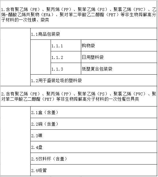 2、《海南省禁止生產(chǎn)銷(xiāo)售使用一次性 不可降解塑料制品名錄(第一批)》