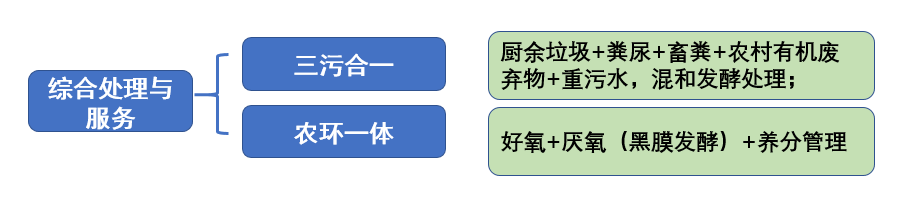 包括兩個方向的綜合,一是處理廢棄物種類多,包括廚余垃圾,重污水,人糞尿和畜禽糞污、農(nóng)作物秸稈、園林廢棄物、農(nóng)村渣土等協(xié)同處理;二是處理與綜合服務同時并舉,建立養(yǎng)分管理服務中心,將處理產(chǎn)品根據(jù)肥力高低科學消納與循環(huán)利用。