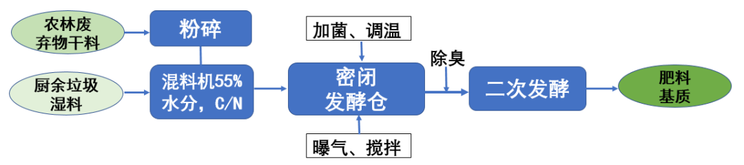 城鄉(xiāng)接合部,城鎮(zhèn)化明顯,人口密度大,垃圾量大,土地資源緊缺,沒有足夠的農(nóng)田可消納處理廢棄物產(chǎn)物??蛇x擇占地面積小、日處理效率高、發(fā)酵時間短的處理方式。