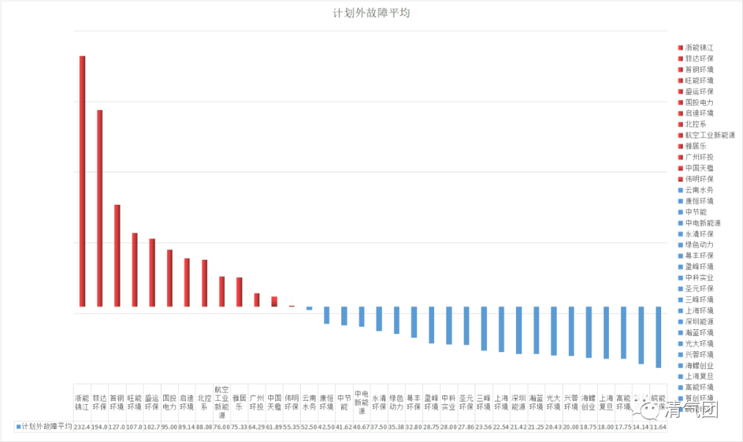 垃圾焚燒領(lǐng)域是近幾年環(huán)境監(jiān)管重點監(jiān)控的領(lǐng)域,也因為焚燒物料——垃圾的復(fù)雜多變、爐型的操作復(fù)雜、污染物成分和產(chǎn)生規(guī)律多樣,被認(rèn)為是較難被新入行者掌握的環(huán)境治理項目。“跨界”做焚燒到底行不行?我們選取了以下12個品牌為“跨界”品牌,并將它們的相關(guān)運維情況,與22家資深垃圾焚燒品牌開展了橫向比較。菲達(dá)環(huán)保,全名浙江菲達(dá)環(huán)??萍脊煞萦邢薰臼菄鴥?nèi)煙氣治理和相關(guān)裝備設(shè)備制造的知名企業(yè),總部在浙江。2015年中標(biāo)貴州省織金縣垃圾焚燒項目,2019年底投入運營。高能環(huán)境,全名北京高能時代環(huán)境技術(shù)股份有限公司,公司前身北京高能墊襯工程有限公司由中科院高能物理研究所高能墊襯工程處改制成立,是國內(nèi)土壤修復(fù)、工業(yè)廢渣廢水處理、垃圾填埋場運營和修復(fù)的龍頭企業(yè)。2015年開始進(jìn)軍垃圾焚燒行業(yè),目前在手運營項目四個,今年以來中標(biāo)多個垃圾焚燒項目。該公司在2020年環(huán)境五十強榜單中排名第21名。國投電力,國投電力控股股份有限公司,是國家開發(fā)投資集團(tuán)有限公司旗下電力上市企業(yè),2019年通過并購方式,開始運營位于貴州省六盤水市的貴州新源垃圾焚燒項目,同時還在2018年通過股權(quán)轉(zhuǎn)讓方式成為國內(nèi)知名固廢企業(yè)——瀚藍(lán)環(huán)境的第二大股東。中國航空工業(yè)新能源投資有限公司,前身系中國航空發(fā)動機總公司,是國家大型中央企業(yè)——中國航空工業(yè)集團(tuán)有限公司旗下成員單位,公司涵蓋清潔能源、市政環(huán)境、綜合能源服務(wù)三大業(yè)務(wù)版塊。2014年旗下四川南充垃圾焚燒項目正式運行,這也是中航系旗下目前唯一的垃圾焚燒項目。上海復(fù)旦水務(wù)工程技術(shù)有限公司,是由上海復(fù)旦大學(xué)和上海實業(yè)集團(tuán)成立的從事污水處理BOT項目高新技術(shù)開發(fā)和投資的專業(yè)公司,2016年從杭州新世紀(jì)手中低調(diào)并購了山東省日照市五蓮垃圾焚燒項目,控股90%,借此機會,上海復(fù)旦系資本也開始介入垃圾焚燒和固廢領(lǐng)域。2019年,該公司還與山東省莘縣住房和城鄉(xiāng)建設(shè)局簽署總投資約為人民幣6億元的垃圾焚燒發(fā)電項目BOT特許經(jīng)營協(xié)議。興蓉環(huán)境,在2020年環(huán)境五十強榜單中排名第23名。是成都環(huán)境投資集團(tuán)下轄的環(huán)保上市公司,主要從事自來水、污水和地下管網(wǎng)維護(hù)等業(yè)務(wù),是我國知名水環(huán)境領(lǐng)域運營企業(yè),旗下有兩家垃圾焚燒廠,均在成都市范圍內(nèi)。雅居樂,我國知名房地產(chǎn)企業(yè),2015年底進(jìn)軍環(huán)保領(lǐng)域,成立了雅居樂環(huán)保集團(tuán),通過收并購方式,運營了45個環(huán)保項目,其中多數(shù)為危廢項目,目前雅居樂擁有超350萬噸/年的危廢處理資質(zhì)和超1900萬立方米的安全填埋場庫容,位居行業(yè)前列。雅居樂目前在垃圾焚燒領(lǐng)域擁有三個項目,焚燒總量為7000噸每日。盈峰環(huán)境,由美的系資本通過并購方式,打造的龐大環(huán)境產(chǎn)業(yè)集團(tuán),是深交所上市企業(yè),目前是國內(nèi)智能環(huán)境裝備及服務(wù),尤其是環(huán)衛(wèi)設(shè)備的行業(yè)引領(lǐng)者,今年以來是環(huán)衛(wèi)市場中標(biāo)金額最高的企業(yè)。旗下通過并購方式,在手運營四家垃圾焚燒企業(yè)。該公司在2020年中國環(huán)境五十強榜單中排名第六。永清環(huán)保,是國內(nèi)知名的土壤環(huán)境治理和工業(yè)大氣治理企業(yè),也是深市A股企業(yè)。旗下在手運營兩家垃圾焚燒廠,并參股了長沙市生活垃圾焚燒廠。首鋼環(huán)境,全名首鋼環(huán)境產(chǎn)業(yè)有限公司(以下簡稱“首鋼環(huán)境”)為首鋼集團(tuán)全資子公司,主要有生活垃圾綜合處理、城市固廢資源化處置、工業(yè)污染場地土壤治理及生態(tài)修復(fù)三個主營業(yè)務(wù)。旗下在手運營魯家山垃圾焚燒廠。云南水務(wù),該公司在2020年中國環(huán)境五十強榜單中排名第13,是我國水務(wù)行業(yè)的龍頭企業(yè)。2015年,在香港聯(lián)交所正式掛牌交易,在海內(nèi)外擁有分、子公司近280家,污水項目151個,日處理總規(guī)模約為362萬噸,自來水項目66個,日處理總規(guī)模約為233萬噸。中科實業(yè),為中科院旗下中科集團(tuán)所屬專業(yè)從事生活垃圾焚燒、污泥干化等固體廢棄物處置技術(shù)研發(fā)和應(yīng)用的高科技工程公司。目前擁有五座垃圾焚燒廠。十二個品牌,均為行業(yè)內(nèi)或在公眾認(rèn)知較為知名的品牌,總共擁有在手垃圾焚燒廠27家,共43臺焚燒爐,除中科實業(yè)的汾陽項目,是兩臺循環(huán)流化床外,其余焚燒廠都是爐排爐;大部分投產(chǎn)時間都在2015年之后,爐齡比較新。這些“跨界”品牌目前的運營狀況如何,與老牌企業(yè)相比有何高下之分?由清氣團(tuán)、上海青悅、蕪湖生態(tài)中心三家機構(gòu)組成的垃圾焚燒ESG評價研究團(tuán)隊,開展了專題研究。此次研究依然以品牌的平均工況水平為衡量指標(biāo)——計劃內(nèi)停爐檢修工況平均天次;計劃外停爐檢修工況平均天次;計劃外故障檢修工況平均天次。我們首先計算了上述三