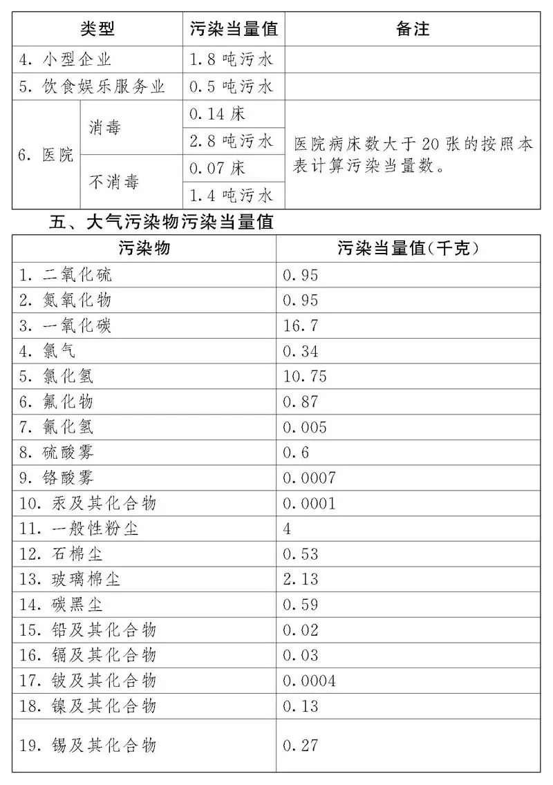 (一)污染當量,是指根據(jù)污染物或者污染排放活動對環(huán)境的有害程度以及處理的技術經(jīng)濟性,衡量不同污染物對環(huán)境污染的綜合性指標或者計量單位。同一介質(zhì)相同污染當量的不同污染物,其污染程度基本相當。
